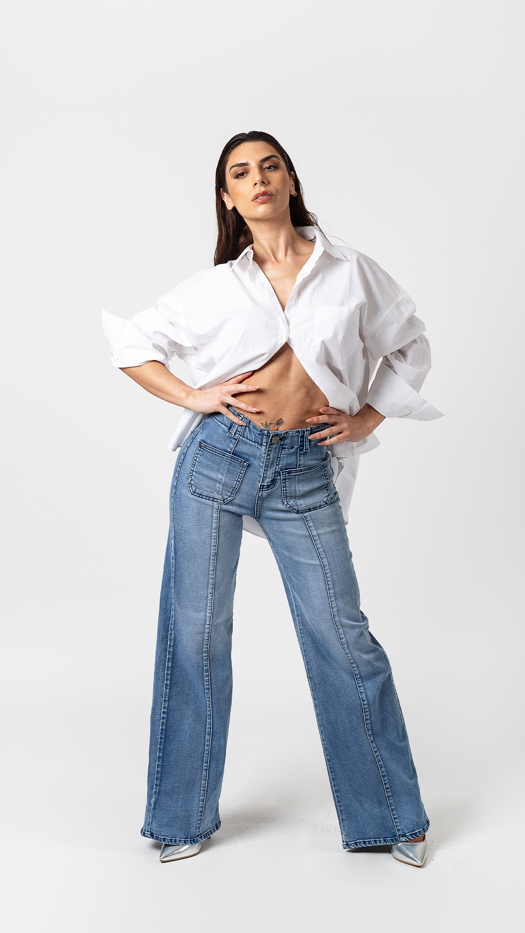 Este jeans elasticado es el nuevo imprescindible para quienes buscan estilo, comodidad y un calce espectacular. Su diseño moderno resalta por las carteras delanteras en formato XL, un detalle que hoy está full tendencia y que aporta un toque urbano y actual.