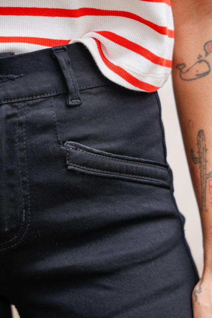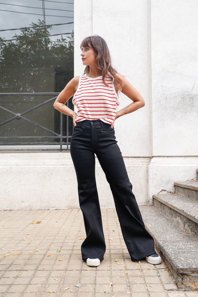 Este no es cualquier flare negro. Es EL FLARE! . Con detalles en los bolsillos que elevan el look sin esfuerzo, tela suavísima y elasticada que se adapta a tu cuerpo como un guante (pero mejor). De día con zapatillas, de noche con tacos, Tu decides el modo.