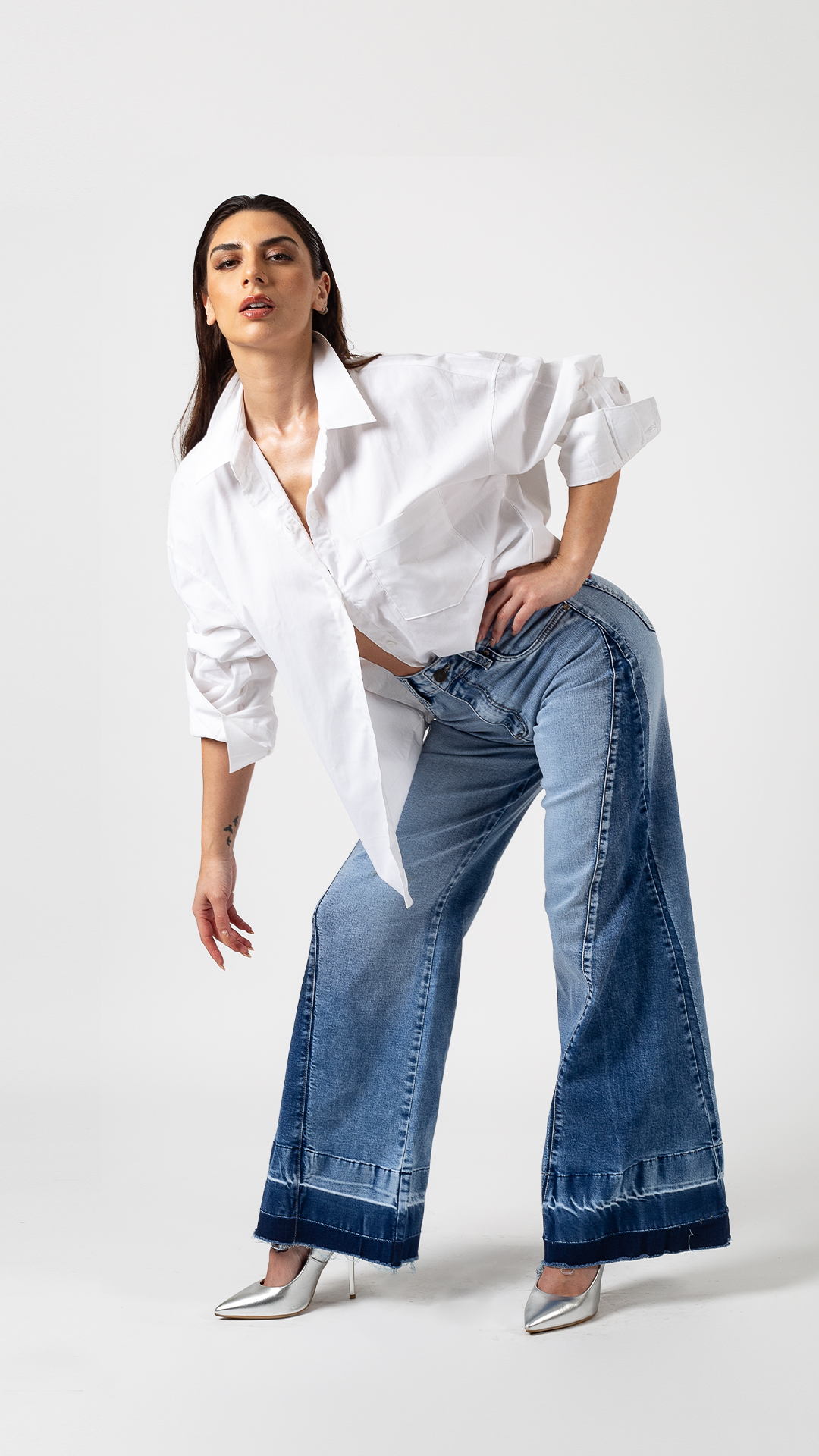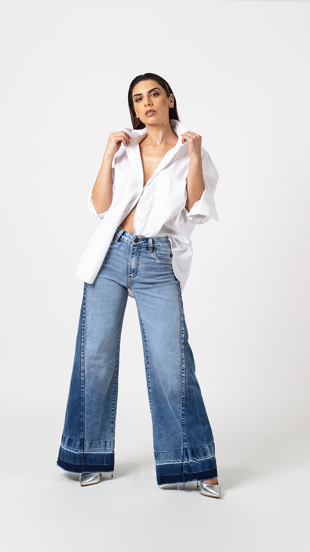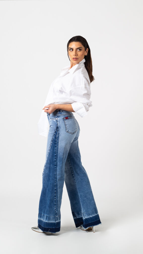 Descubre Pia, nuestro jeans palazo lleno de estilo y personalidad. Su diseño destaca por un juego de cambios de tono que lo hacen ultra moderno y completamente en tendencia. Con un calce cómodo y favorecedor, este modelo aporta ese look relajado pero sofisticado que se lleva esta temporada.
