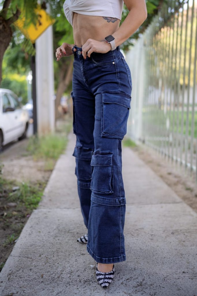 Este jeans no es para cualquiera… es para las que se atreven a marcar estilo sin esfuerzo. De calce soñado, tela elasticada ultra suave y un diseño palazzo con bolsillos cargo que grita actitud.